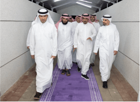 His Excellency Sulaiman Saleem Al-Harbi, Chairman of the Board of Directors of Pan Kingdom Holding Company, and His Excellency Abdulwahab Saleem Al-Harbi, Chief Executive Officer of Pan Kingdom Real Estate, received His Excellency Mr. Majid bin Abdullah Al-Hogail, Minister of Municipal and Rural Affairs and Housing, at the Al-Jiwar Residential Project in Madinah, where His Excellency reviewed the project’s details and development